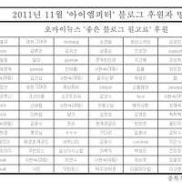 | 2011년 11월 블로그 후원자 명단 (21) | 2011.12.01 |